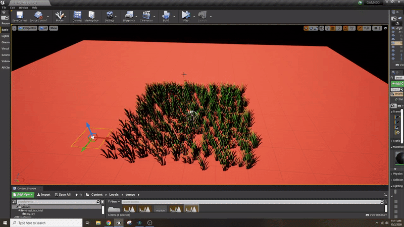 I programmed the dynamic grass that moves with wind and gets crushed by the player making good use of shaders and virtual textures. I also implemented the bomber enemy and the bomb with its explosion particles, and some level sections such as the puzzle where you have to bounce bombs onto some unreachable turrets.